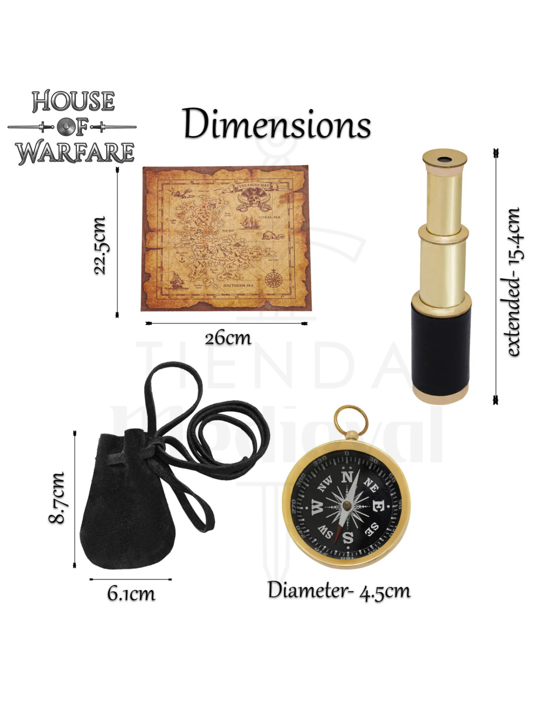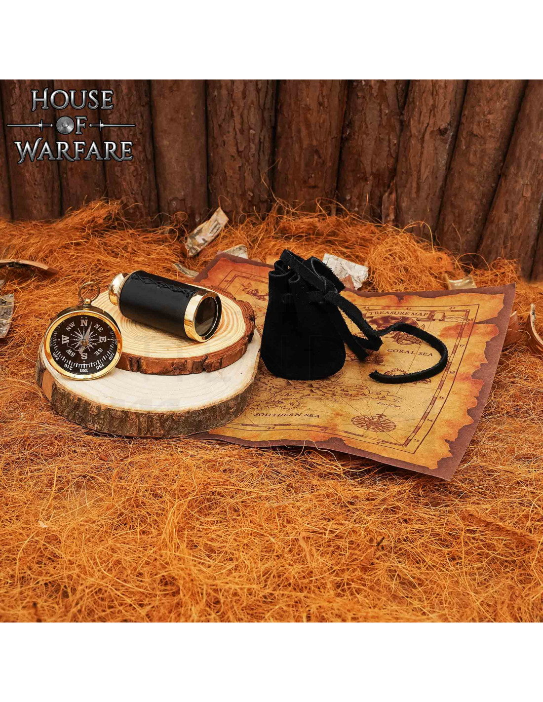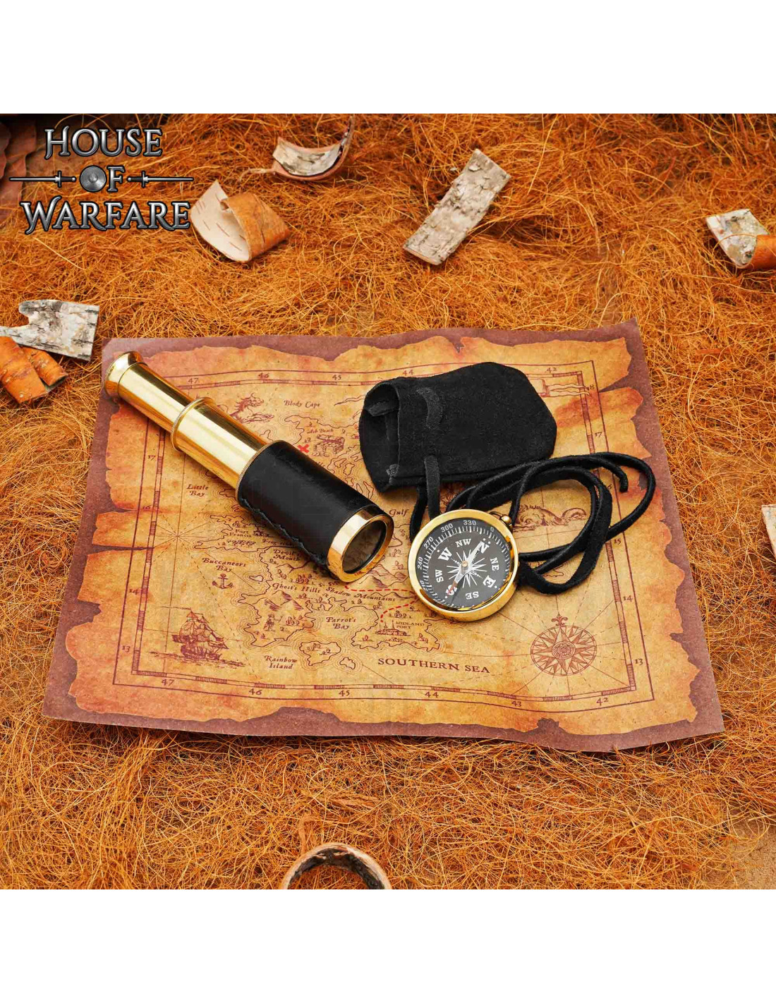 Perfect for adventures inspired by sailors, pirates, and classic expeditions, this set is ideal if you want to purchase a Treasure Hunt Set: compass, telescope, and map for LARP, cosplay, or as a collectible piece.