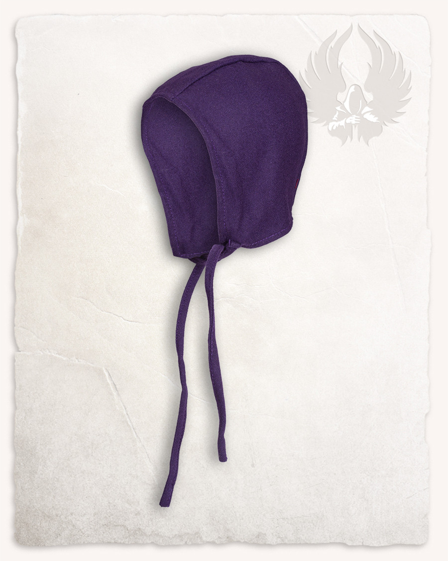 In short, this lilac suede leather crespina is a versatile and authentic garment that can be used in historical reenactment events, theatrical performances or as part of period costumes. In addition to its historical value, it can also provide comfort and protection for the head, and its adjustable design makes it suitable for a wide range of people.