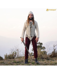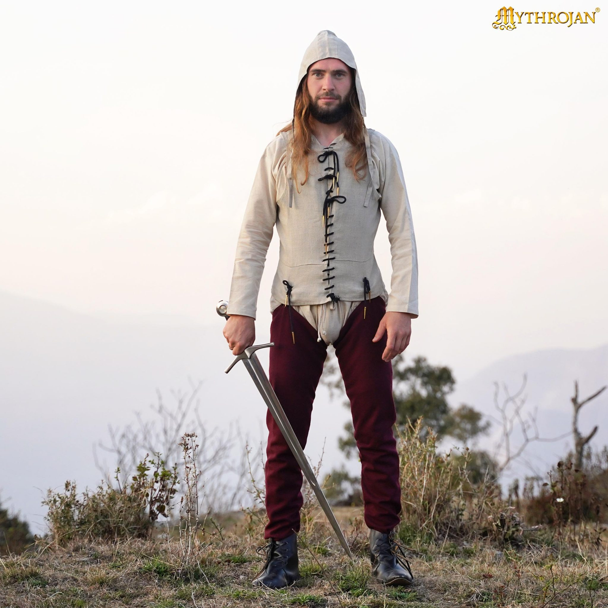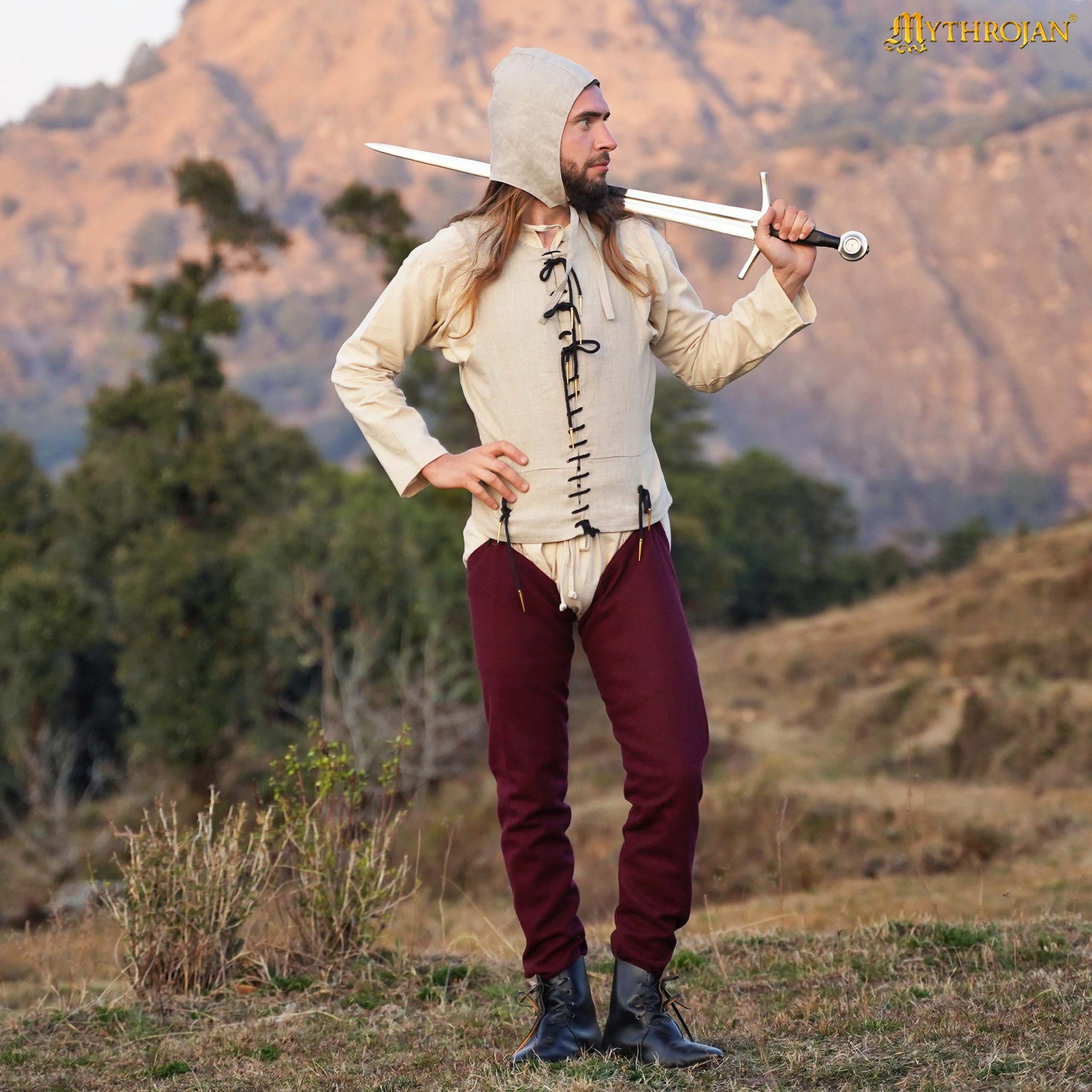 Complete your medieval outfit with the authentic Medieval Crespina in beige linen from Mythrojan. Inspired by the period spanning the 13th to the 15th centuries, this piece reflects the essence of medieval clothing, worn by people of all social classes in Europe. Made from 100% high-quality Baltic linen, this crespina is lightweight and breathable, making it ideal for historical reenactments, live-action role-playing (LARP) events, or activities with the Society for Creative Anachronism (SCA).