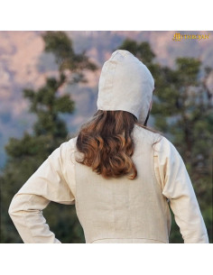 Easy to care for, this piece can be hand washed or washed on a delicate cycle, air dried, and ironed at low temperature to maintain its original texture. Whether as a complement under armor or as part of a complete outfit, this crespina elevates your historical reenactment with a blend of practicality and historical fidelity.