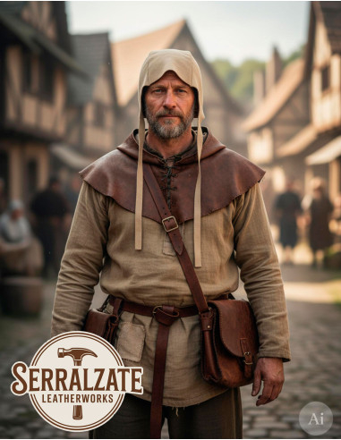 Add an authentic touch to your medieval wardrobe with this elegant leather hood, designed for history and adventure lovers! Made of soft beige suede, this piece combines comfort and style, allowing you to look like a true knight or lady of the era.