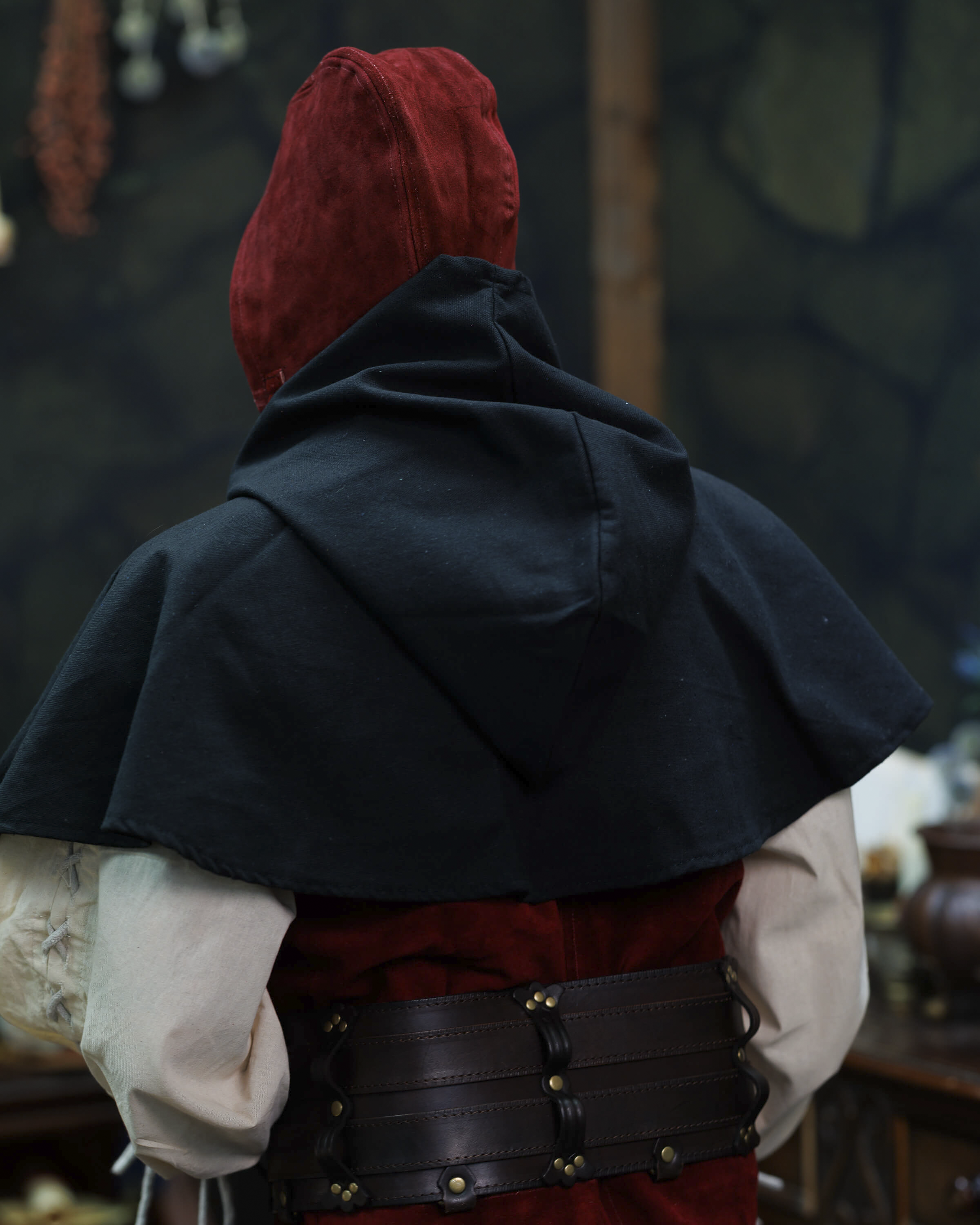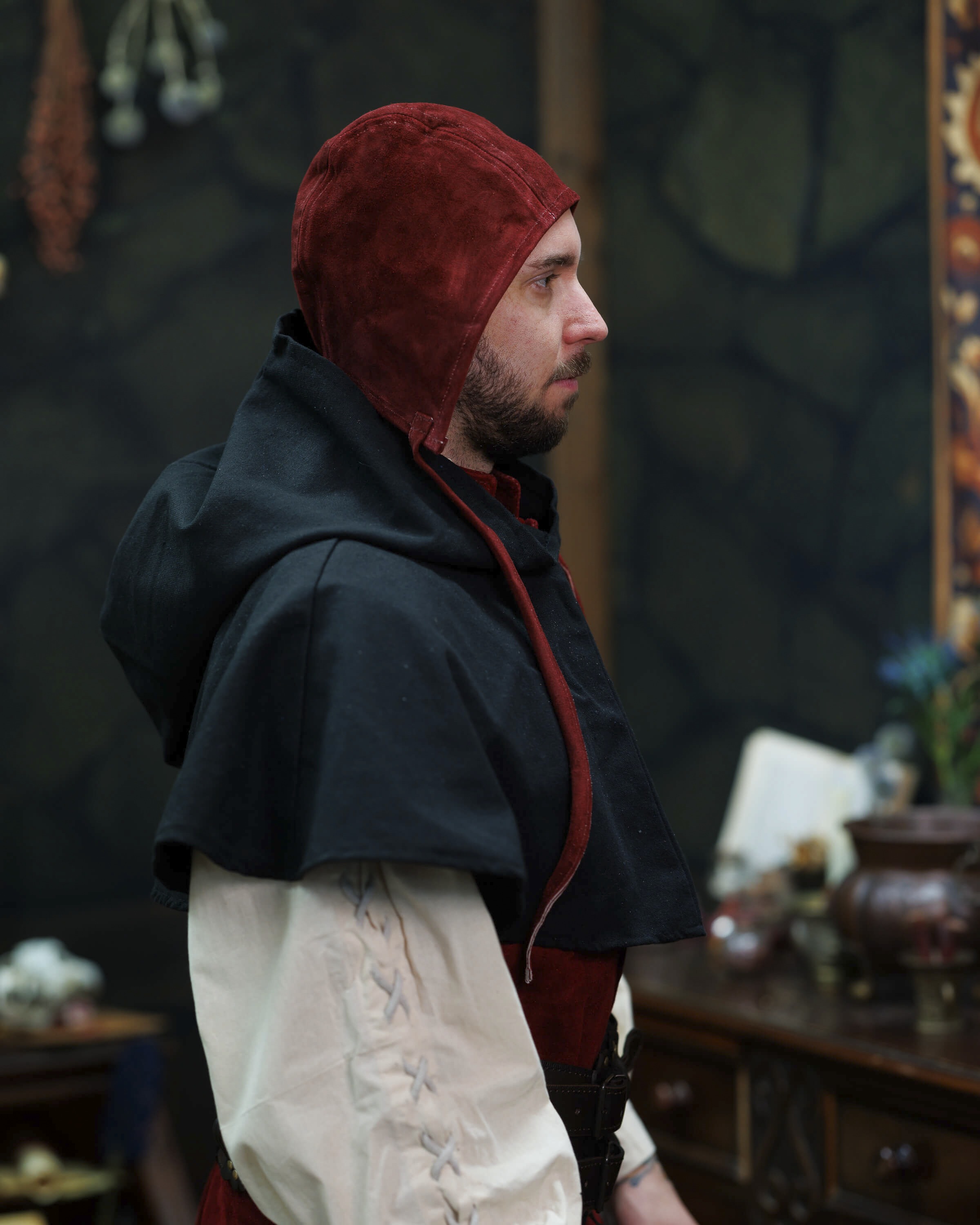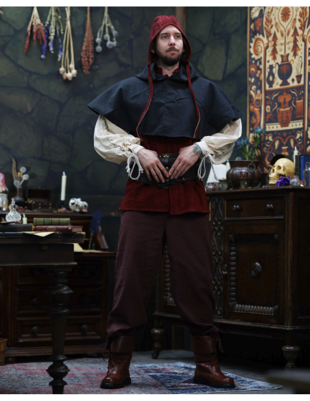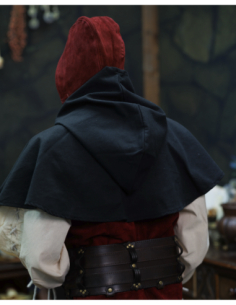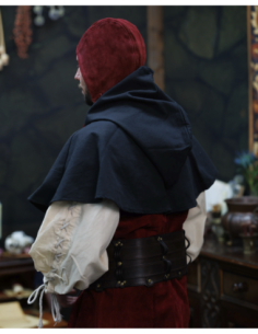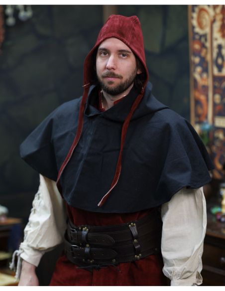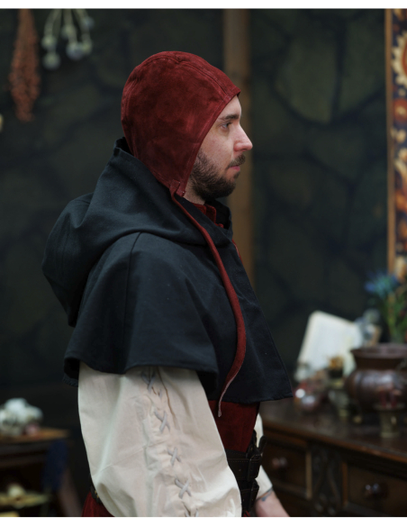 Perfect for historical reenactments, photo shoots, fairs, or for anyone seeking a distinctive accessory, this piece naturally adapts to larger sizes and light helmets, providing comfort and a reliable fit thanks to its ties. If you want to purchase Martinus Medieval Suede Hood in Burgundy, you will find in it a blend of authenticity, comfort, and style that distinguishes any outfit.