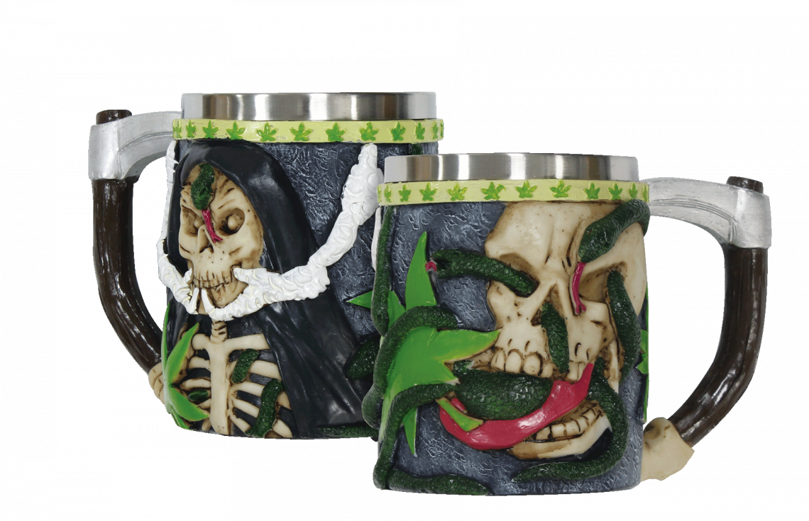 In the design of the cup, you will find an intriguing decoration: a skull pierced by a snake. This mystical and enigmatic representation evokes the duality between life and death, adding a touch of mystery and fascination to the cup.