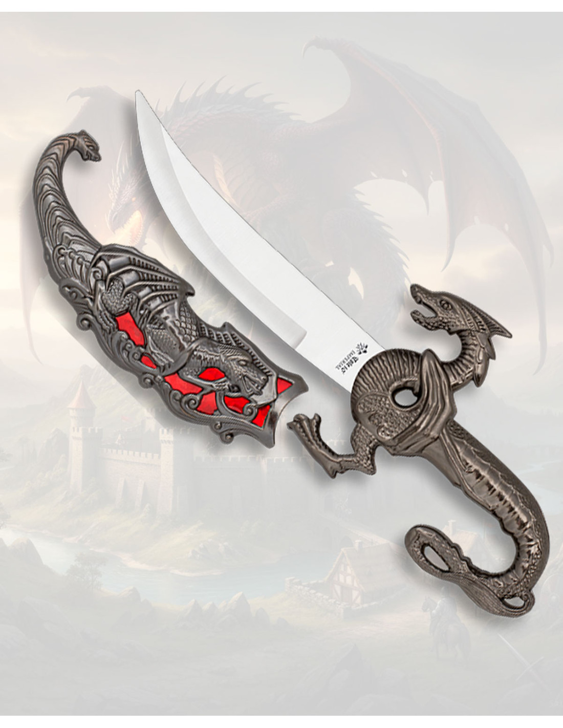 If you are determined to add a unique piece to your collection, consider purchasing the Medieval Fantasy Dragon Dagger with Scabbard as an acquisition that combines aesthetics, touch, and presence, ready to be displayed or accompany themed events.