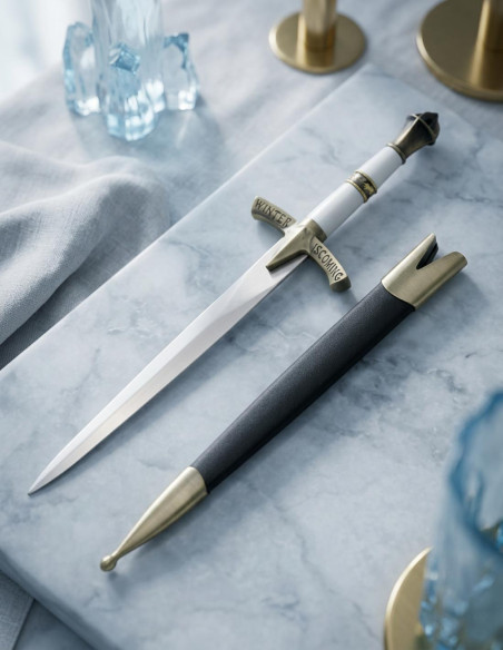 Now, with the golden Winter is Coming dagger, you can turn that anxiety into a bold statement. This instrument merges the elegance of a gold finish with the durability of a 23 cm carbon steel blade, crafted to endure and stand out. Its 42 cm size makes it perfect to carry with you, ready to enhance your look and reinforce your presence in any situation. It’s not just a collectible item, but a tangible symbol of your commitment, passion, and winning attitude. This is not only an accessory; it’s your vehicle to a new version of yourself, one that no one can ignore.