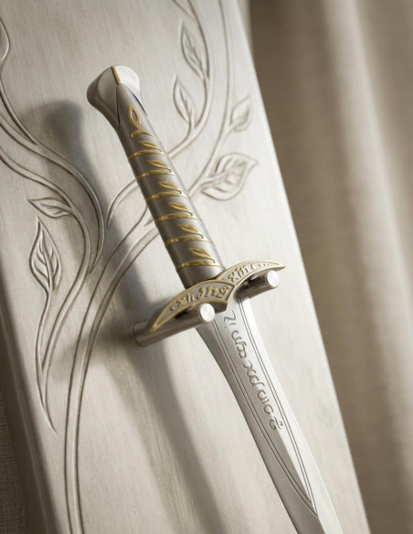 This wooden-supported knife is much more than a decorative piece. It’s a declaration of intent, a visible act of personality on your wall. Its size, its meticulous finish, and its fantastic design allow you to connect with worlds full of magic and mystery, taking you to a state of constant inspiration. Hanging it on your wall, in that special corner or on your living room, invites you to relive your favorite stories and to affirm firmly who you are and what you value. Because you’re not just decorating, you’re affirming your identity with every detail, with every element you choose for your space.