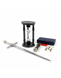 Finally, the Medieval Sand Timer (13x7 cm) accurately measures those 5 minutes of introspection necessary in the Chamber of Reflection. Made from high-quality resin with a robust design, it serves as a visual reminder of the transience of time and the importance of well-done work. An essential set for the mason who wishes to elevate their affiliation to the next level of pride and style.
