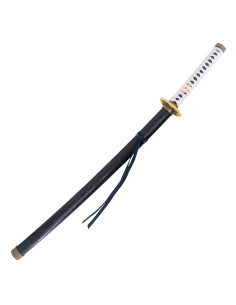 With a total length of 101 cm, this katana features a bamboo blade of 68.5 cm in an elegant blue and gray finish. The blade is equipped with a white LED strip, which provides a brilliant luminous effect that enhances the design of the sword and highlights its visual presence. The AAA battery mechanism ensures easy and continuous operation of the LED lighting, allowing the katana to shine brightly and stand out in any collection.