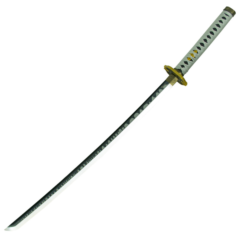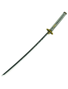 The white wrapped handle not only offers a comfortable grip but also maintains the authentic aesthetic of the Yamato. The choice of white for the wrapping provides a sophisticated contrast with the blade's finish and the luminous effect, underscoring the distinctive and elegant character of the katana.
