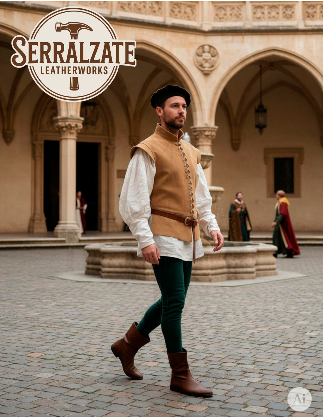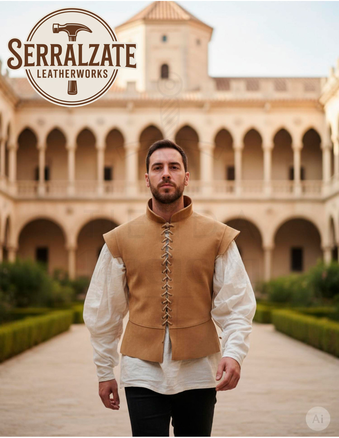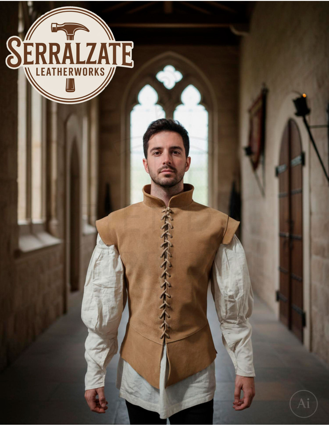 If you want to buy a medieval and Renaissance vest in light brown suede leather, here is a piece that promises to transform your appearance with character and confidence, bringing a touch of legacy and craftsmanship to every seam.