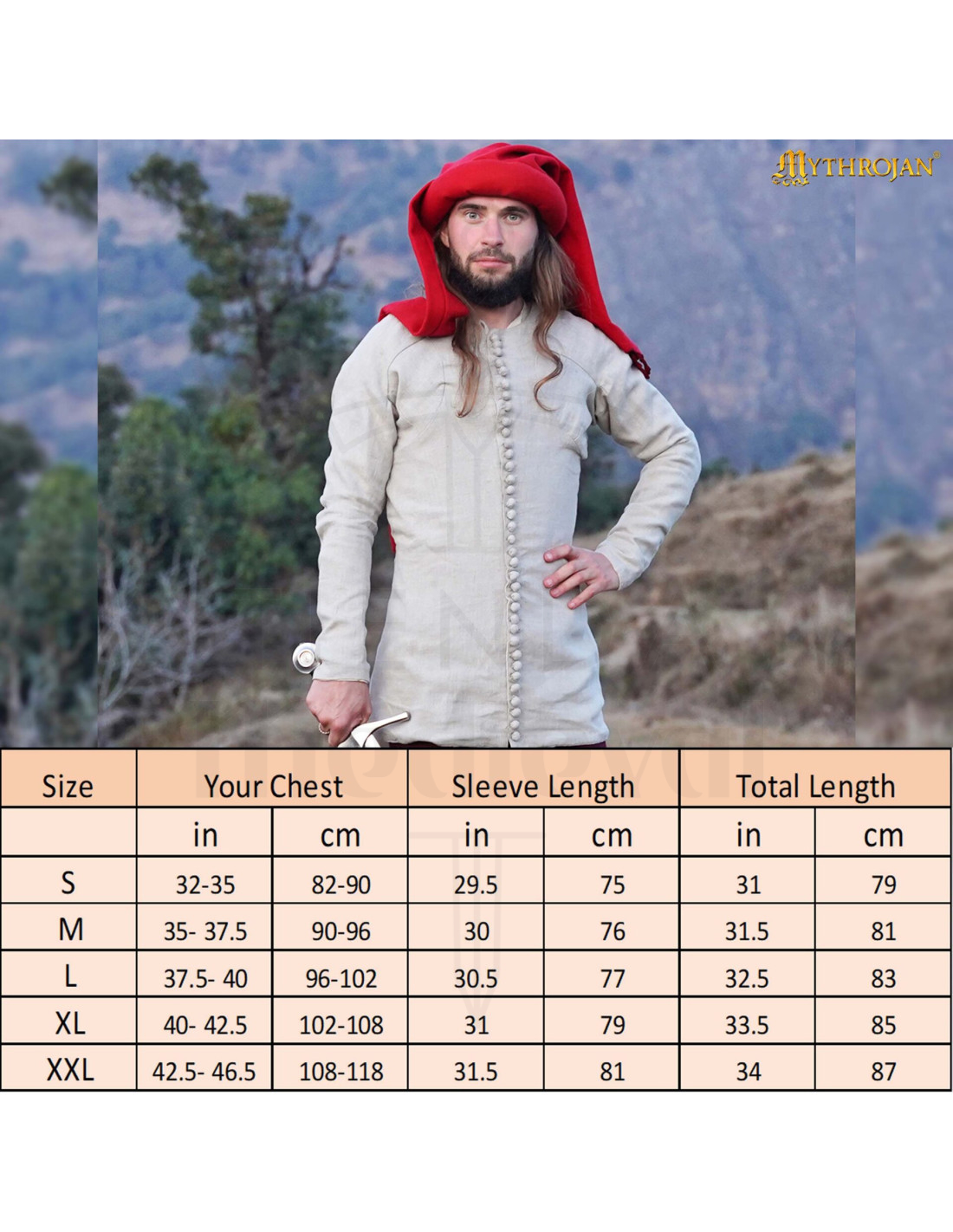 Each 14th Century Medieval Doublet in Natural Linen is handcrafted using traditional techniques, so slight variations in color and texture may be appreciated, a mark of artisanal authenticity. Charles de Blois was a central figure of the 14th century, and wearing this piece connects directly with that historical legacy.