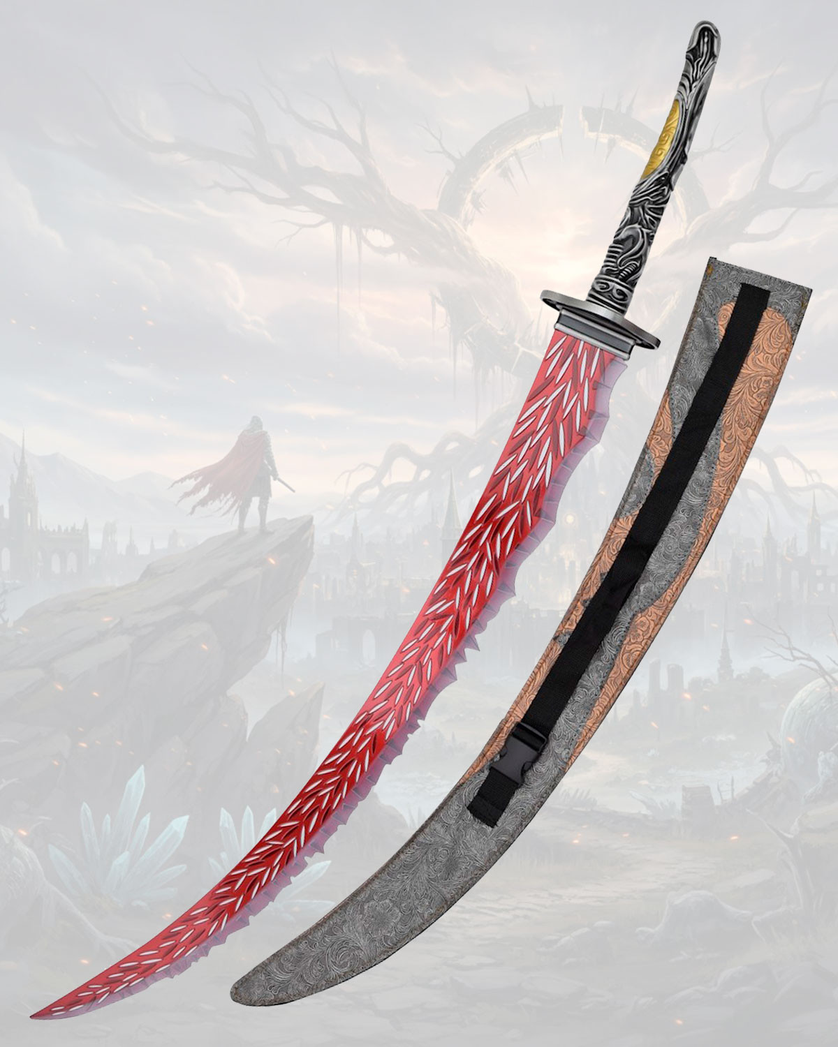 Unofficial replica of Maliketh's Sword from Elden Ring, with stand
