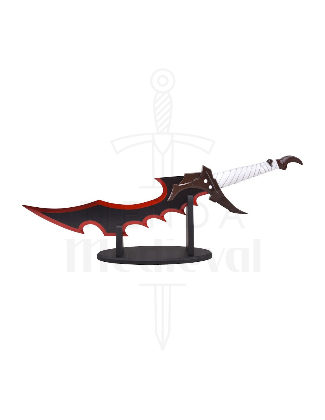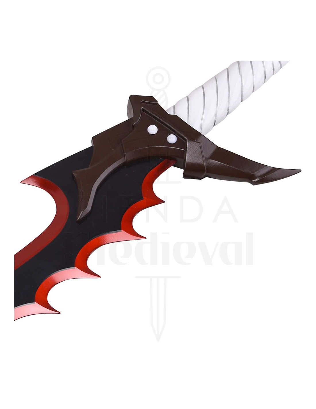 The Sung Jinwoo Solo Leveling Dagger Replica with stand brings that dramatic aura thanks to its black blade with red edges and an irregular edge full of notches and points, creating an aggressive and theatrical finish that stands out on any furniture.