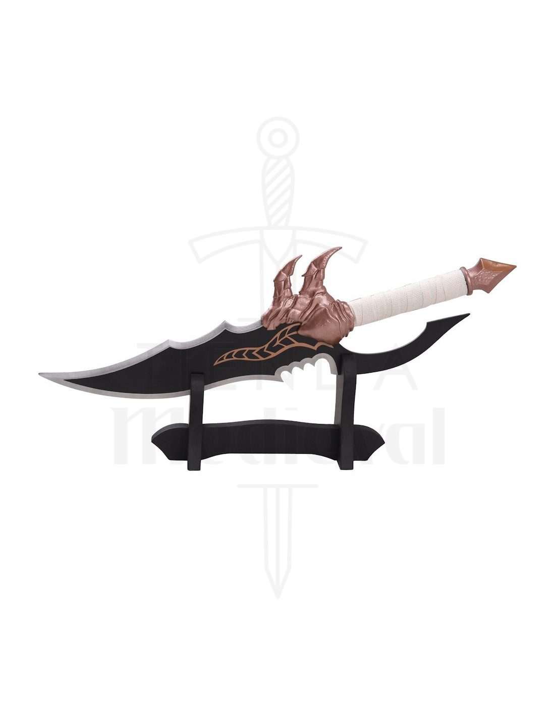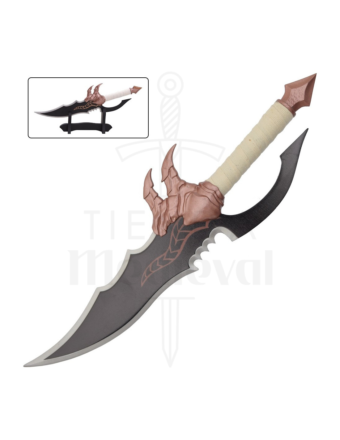 Includes a tabletop stand that allows you to display it securely and stylishly, transforming any corner into a focal point. Designed for exhibition, this dagger combines presence and practicality, ready to integrate into a showcase, desk, or themed corner without the need for complicated mountings.