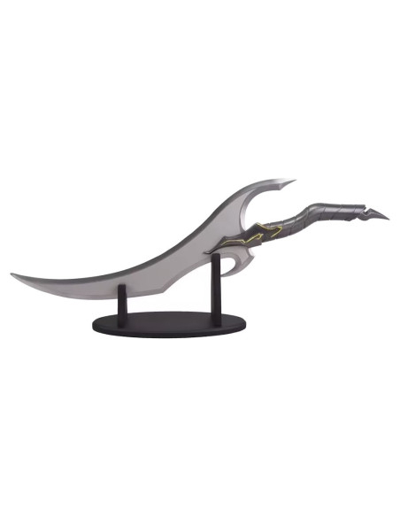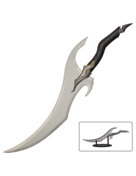 Con líneas curvas y una silueta estilizada, esta daga ofrece una estética impactante que eleva tu colección sin requerir montaje complicado. La hoja de acero refleja la luz con un brillo frío, aportando un aire auténtico y contundente, mientras que el filo exterior y la punta afilada crean una sensación de dinamismo aunque su uso sea exclusivamente decorativo. El guardamanos arqueado sigue la línea de la hoja, sumando continuidad visual y un aspecto equilibrado que llama la mirada.