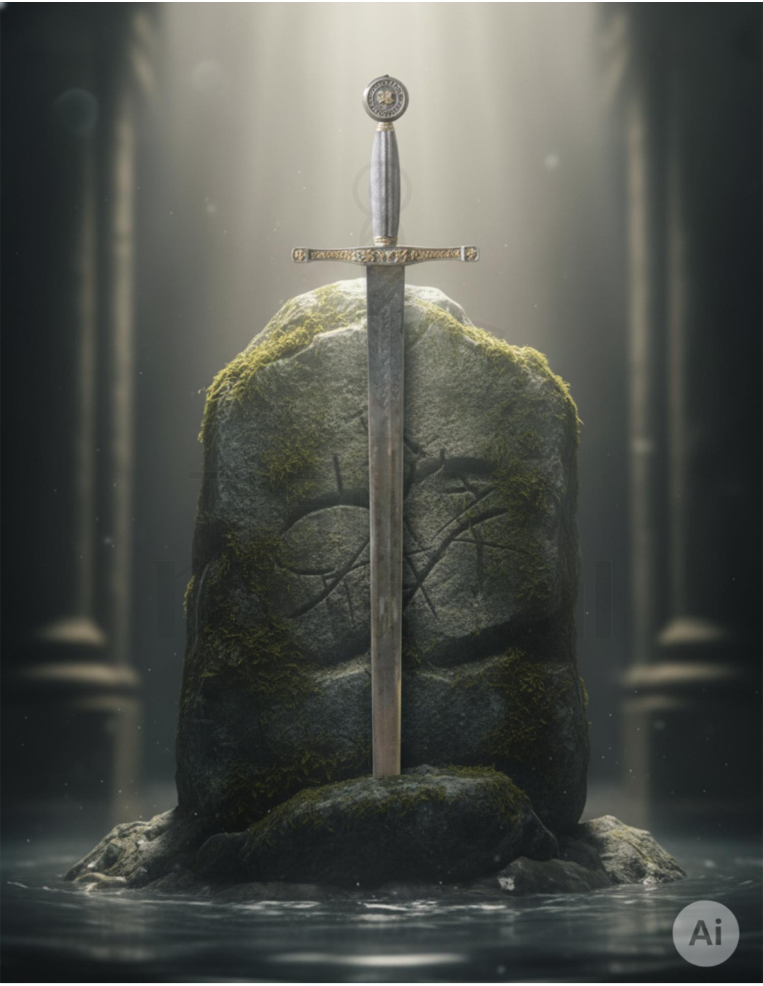 The history and legend of the Sword of King Arthur is closely linked to the magical and mysterious sword Excalibur and as Merlin the magician had announced, only whoever managed to remove the Excalibur sword from the rock would be king. Arthur performed this feat and kneeling before the stone, extracted from it the Excalibur blade with great ease, held it above his head and then entered the cathedral and deposited it on the altar.