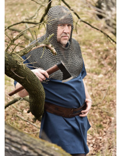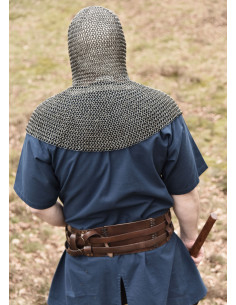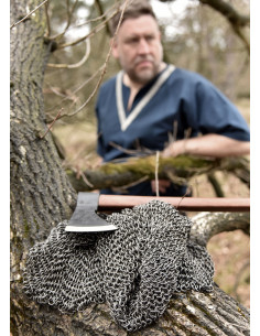 Its design, inspired by chainmail hauberks that accompanied warriors from the Dark Ages to the late medieval period, stands out for a square facial opening that facilitates mobility and provides a genuine, period-accurate appearance. Covering the neck and shoulders precisely, it protects these vulnerable areas without sacrificing comfort or freedom of movement.