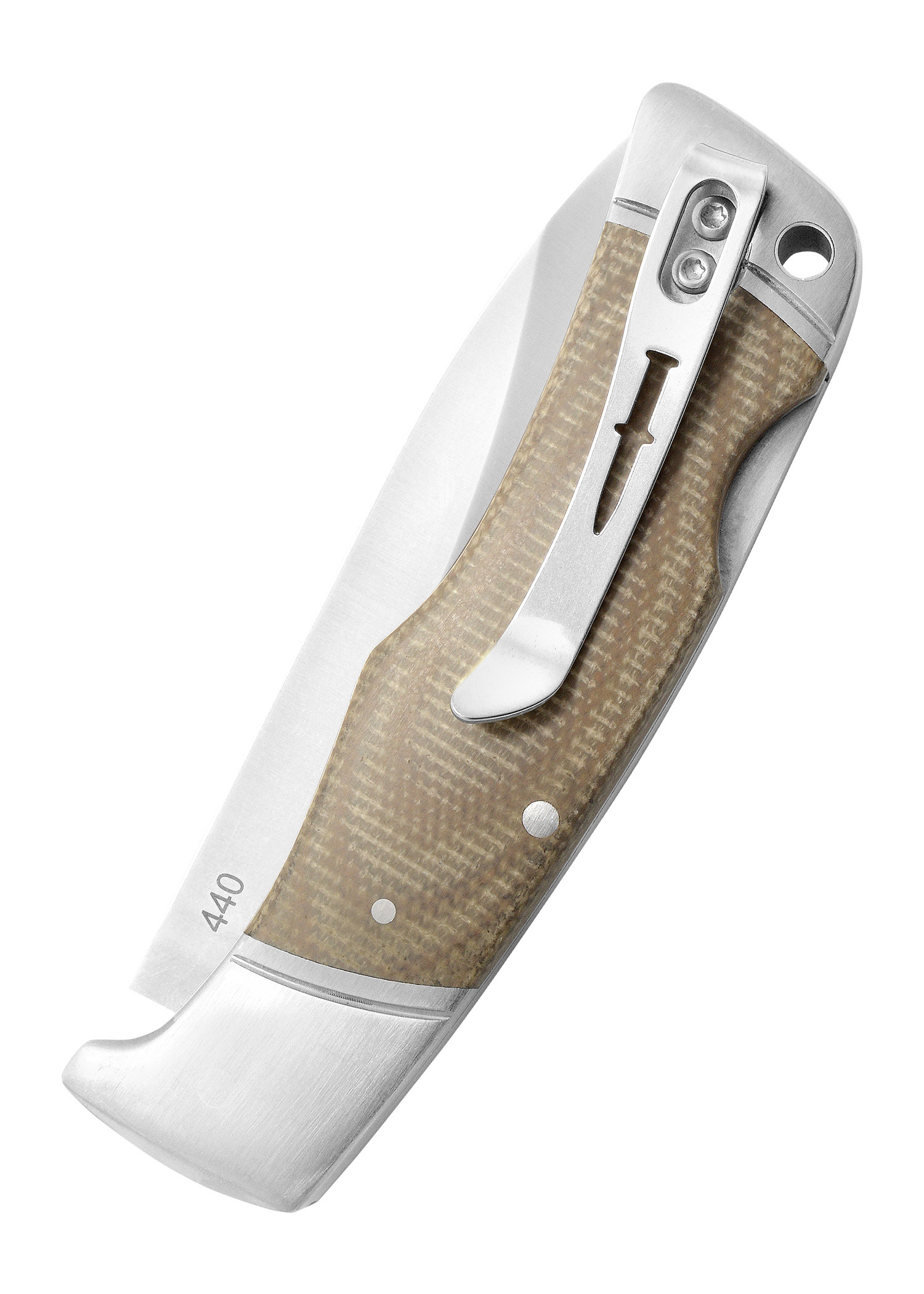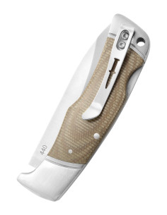 - Ergonomic Micarta Handle: The handle is made of Micarta, a material composed of several layers impregnated with synthetic resin. This provides excellent grip even in wet conditions and notable resistance to temperature and humidity fluctuations.