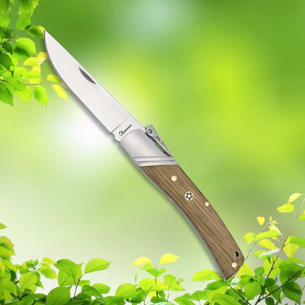 The handle, made of decorated zebra wood, not only stands out for its refined aesthetics, with visible grains of great personality, but also for its ergonomics, ensuring a firm and secure grip. The steel locking mechanism provides stability with each use, while its robust design and optimized blade thickness offer a reliable experience for daily tasks or outdoor activities.