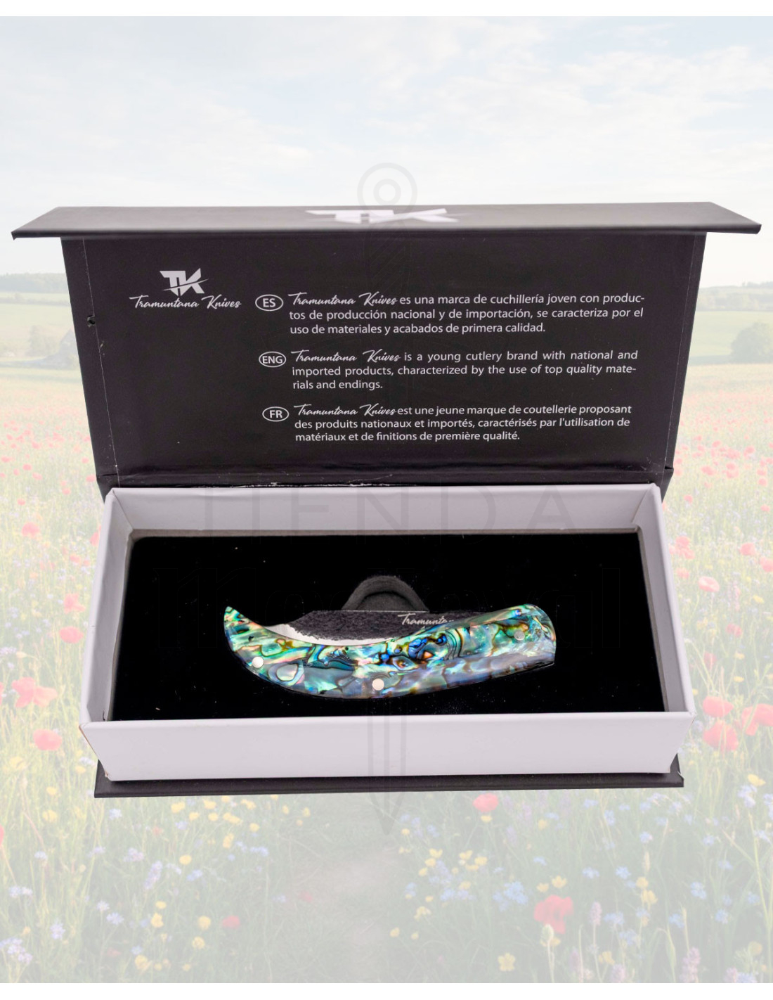If you are looking to purchase the Rustic Folding Knife by Tramuntana Knives with abalone and resin handle, you will find in it a blend of craftsmanship and functionality, designed for those who appreciate visible details and reliable performance.