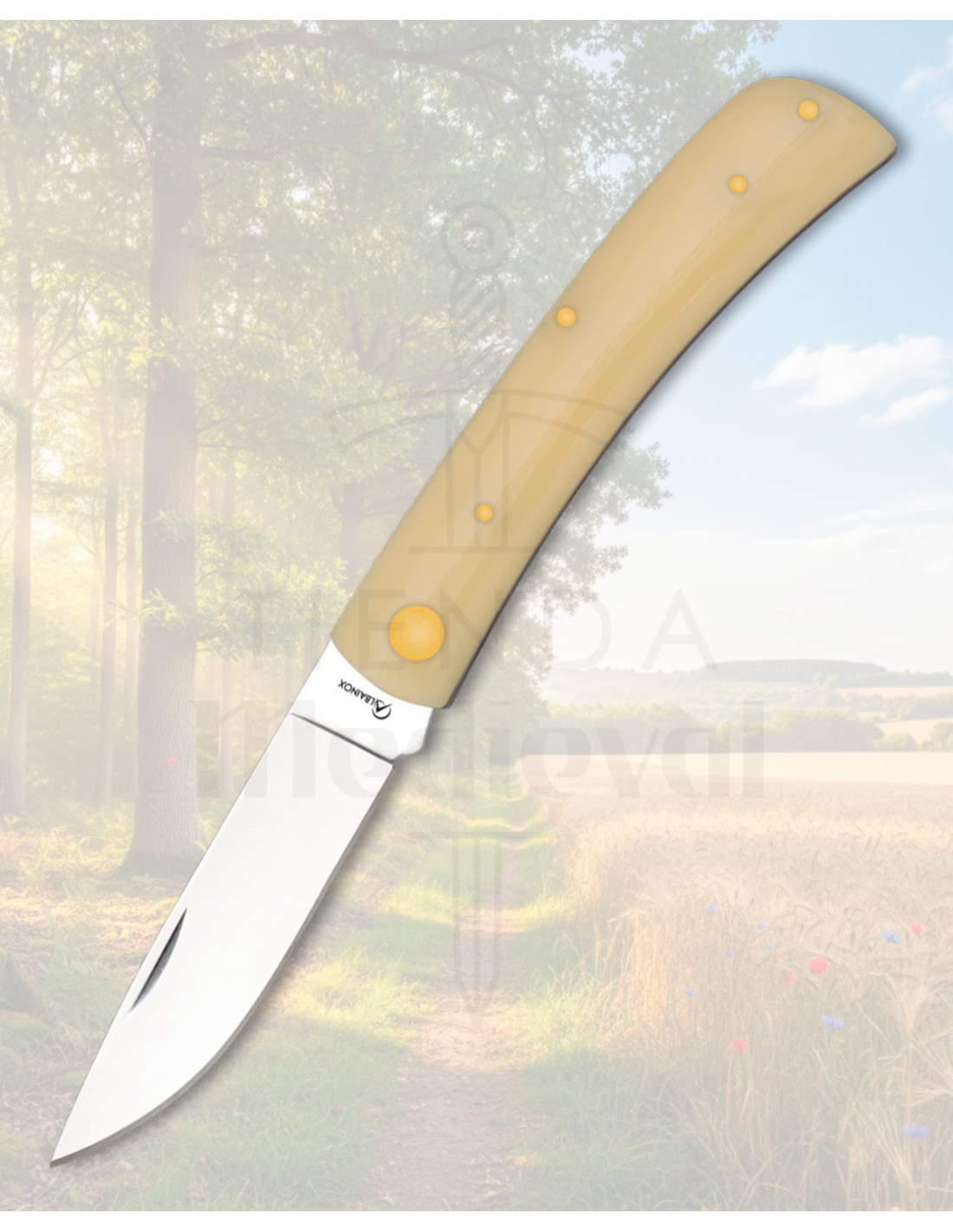 The Albainox Campaña Field Knife combines natural handling with precise cutting, thanks to its stainless steel blade with a satin finish that offers smooth sliding and an easy-to-maintain edge. This finish not only facilitates cutting but also prevents annoying reflections and keeps the aesthetics clean with use.