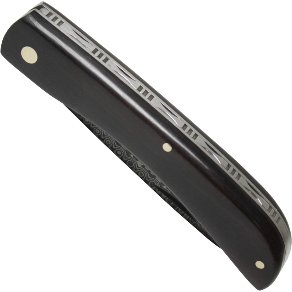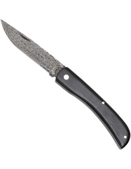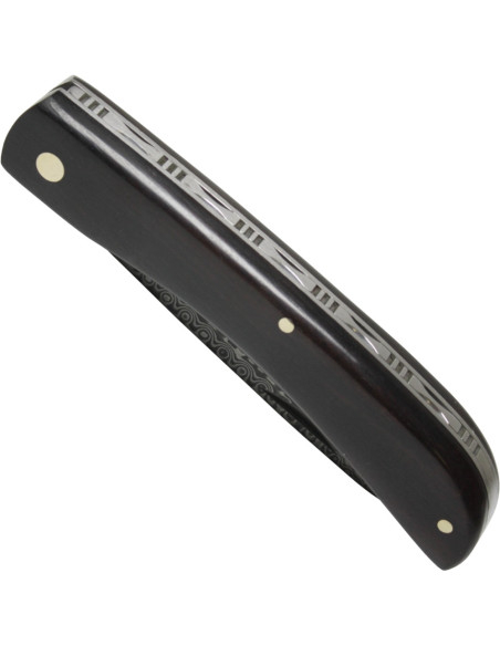The ebony handle offers a warm touch and an elegant dark finish, its slight curve adapting to the hand for a secure grip without effort, while the visible rivets ensure solidity with every use. The narrow and compact design makes it easy to carry in your pocket without discomfort, ready for daily tasks or to accompany you on outings.
