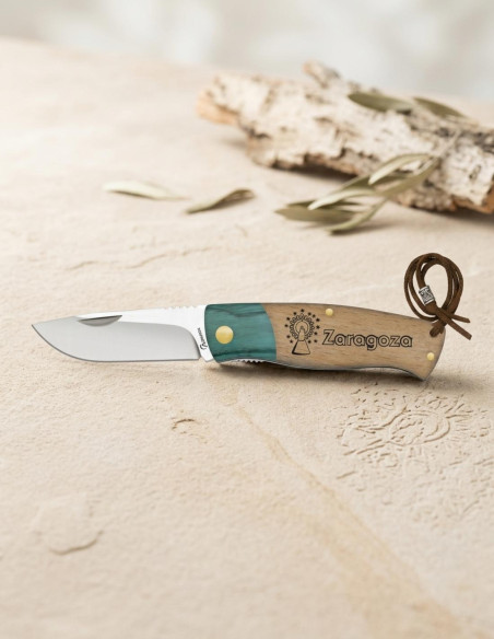 Imagine having in your hands a knife that combines tradition, functionality, and a design that highlights your character. The 7.20 cm stainless steel blade not only guarantees durability but adjusts to every task with a straight edge and a curved tip that facilitates precise cuts. Its satin finish reflects your attitude of valuing the durable and the practical. The handle, made of zebrawood that combines light brown and teal tones, offers an ergonomic and comfortable grip, while the golden rivets add a distinctive touch of sophistication. The striated texture near the blade enhances your control, and the decorative cord with a metal bead reminds you that your style is in every move. The Albainox Stamina Zaragoza not only fulfills but interprets your spirit of adventure and precision, allowing you to feel confident in every moment and every mission.