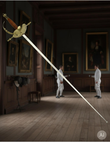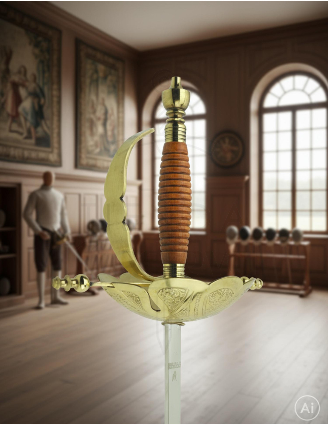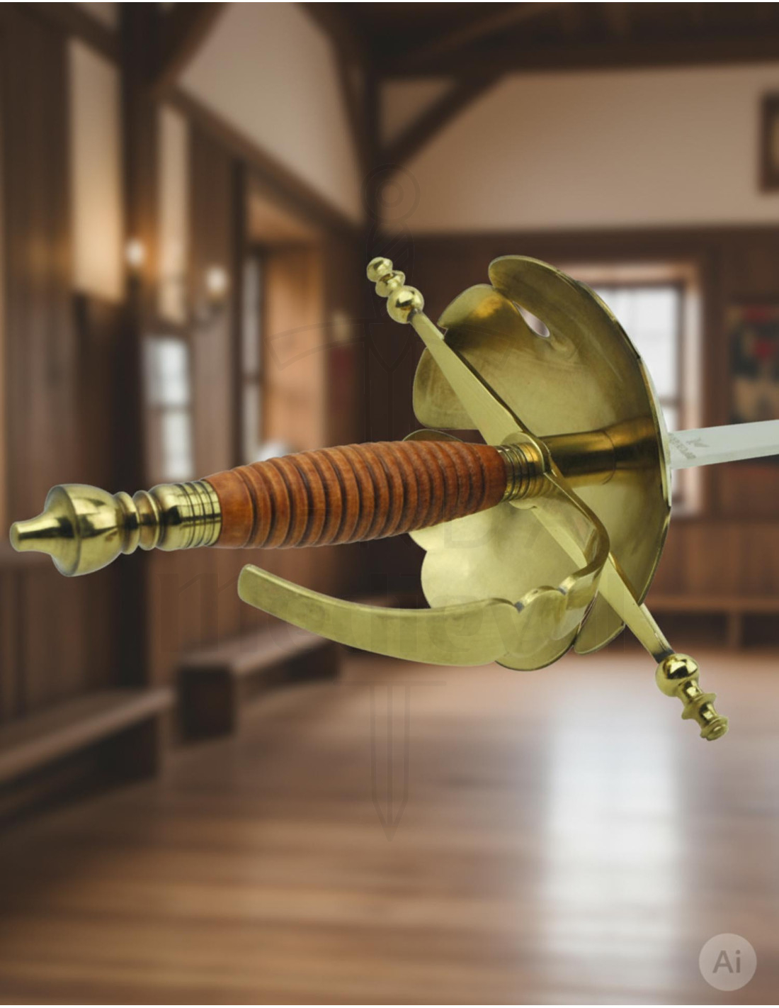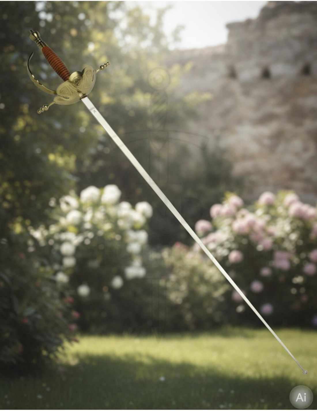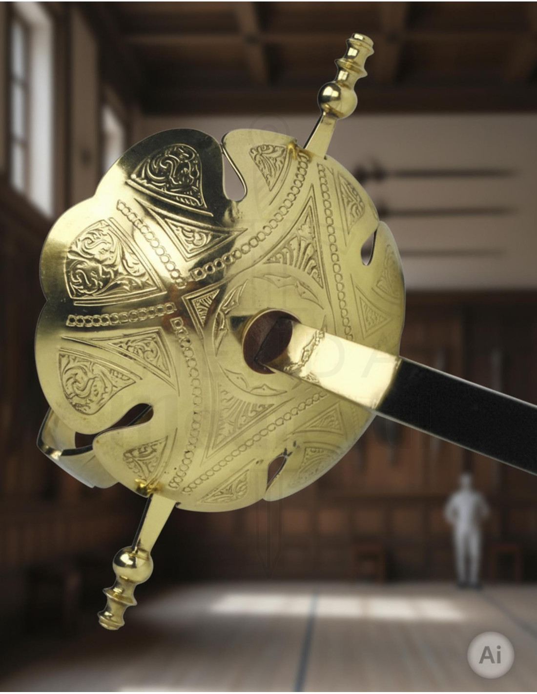 Immerse yourself in the world of nobility and history with the Castanet Floret. This piece, with its unmistakable and elegant gilded finish, is not just a replica but an authentic jewel that captures the essence of ancient fencing and artisanal mastery. It is the perfect complement for history enthusiasts, collectors, or decorators seeking an element of impact, sophistication, and deep cultural significance.