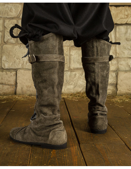 High medieval boots with buckle closure, black