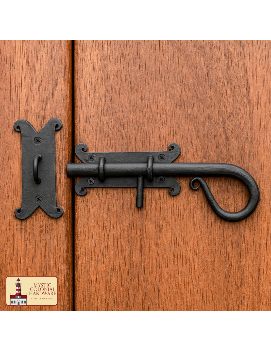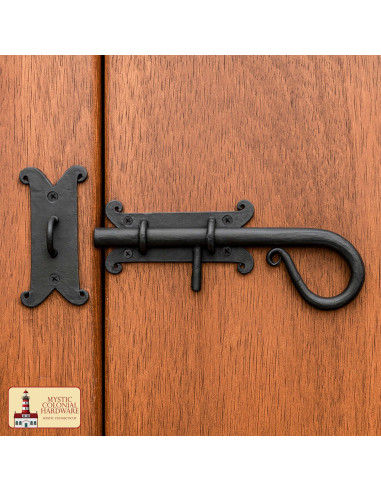 Are you looking to close each door or gate with style and confidence? This bolt combines strength and vintage aesthetics so you don't have to choose between security and good taste. Hand-forged in solid iron with an oiled black finish, it provides a rustic presence that protects against the elements and enhances the wood where it is installed, leaving an aged yet well-maintained appearance that fits colonial, rural, or medieval-inspired environments.