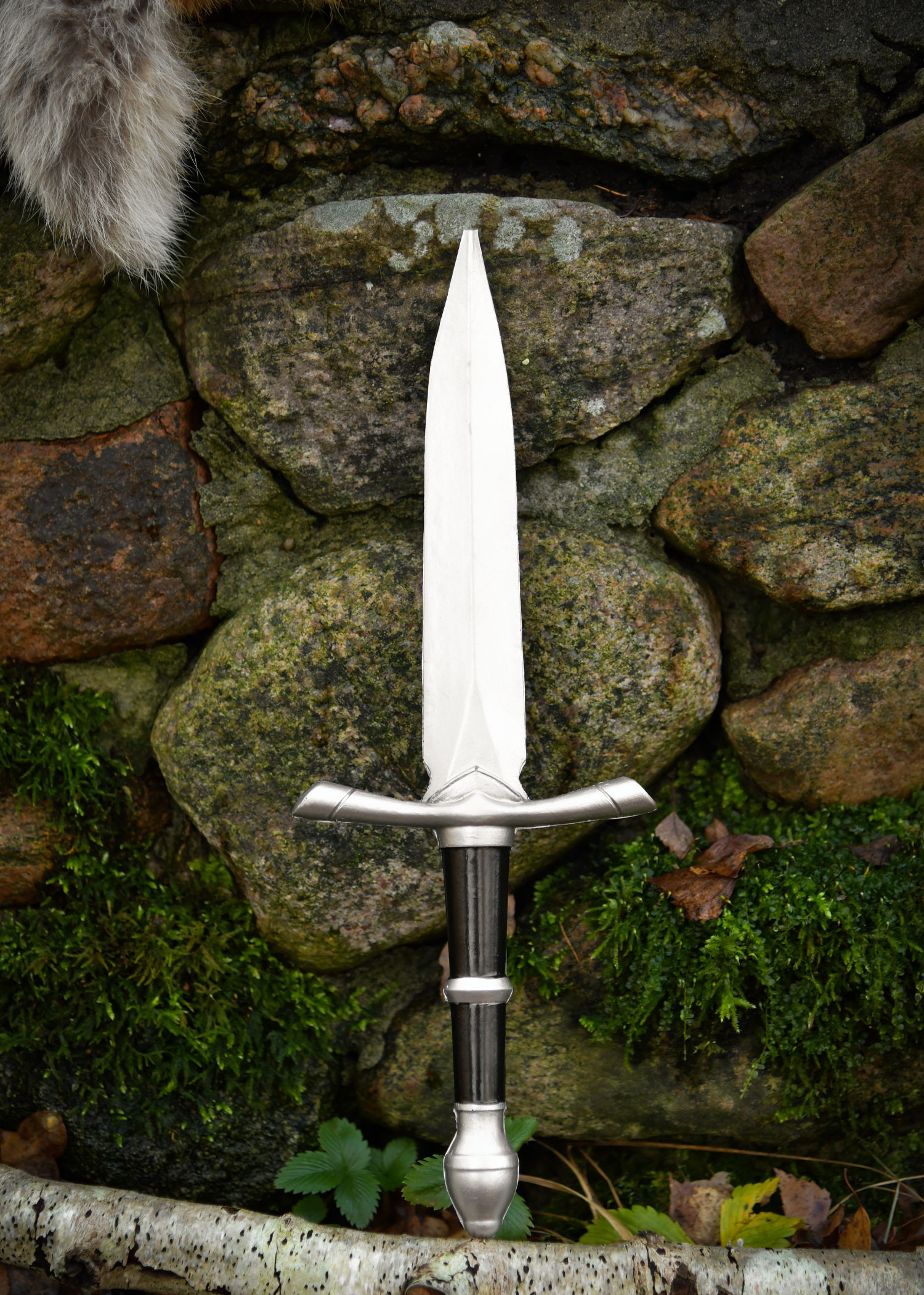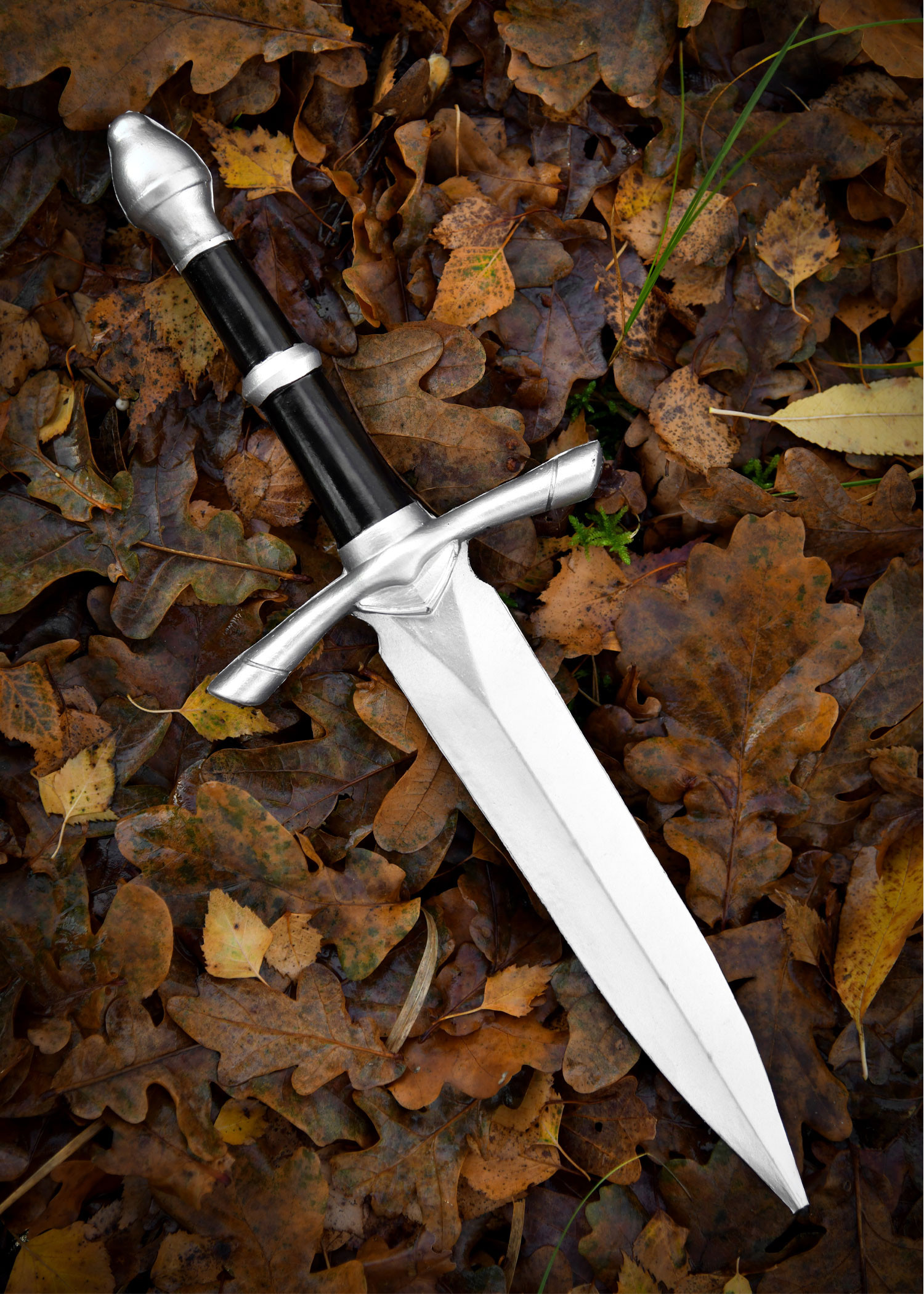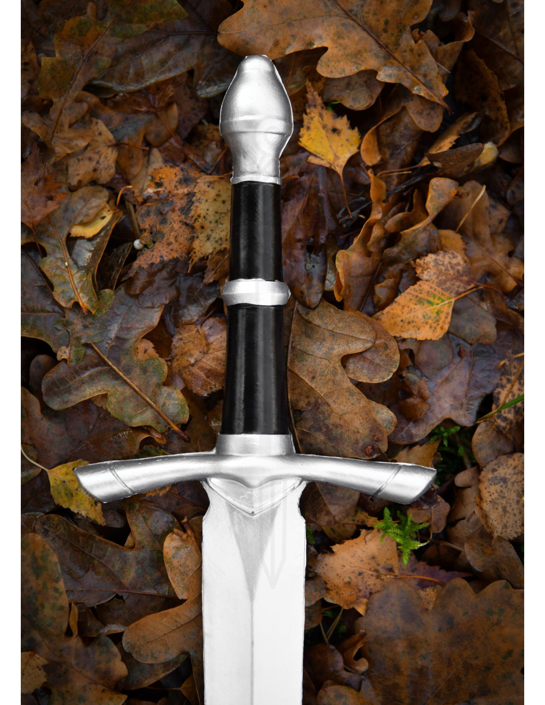 Imagine slipping through enemy ranks with the confidence of one who knows their weapon not only looks authentic but also performs when it matters. Caladir offers a balance between visual presence and safety, a silver finish that deceives the eye and a construction designed for the constant wear of recreated combat. Its double-edged blade and precise tip facilitate quick movements and controlled thrusts, without relinquishing the peace of a rigid core that maintains shape with every impact.