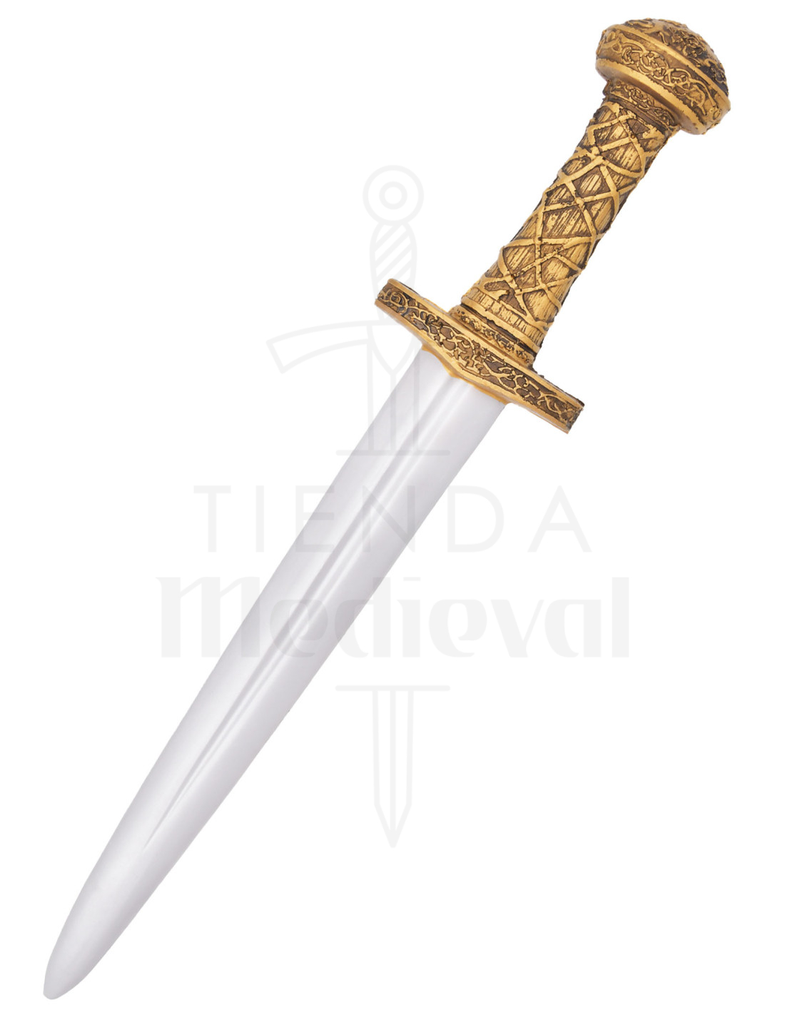 Because it’s not always about strength, but about precision and presence, this model serves as an elegant secondary weapon, ritual tool, or scene accessory that enhances immersion without adding weight that tires you out. Its polished finish and the combination of silver and gold colors make Eldrin stand out in choreographed combats, cosplay, or theatrical performances.