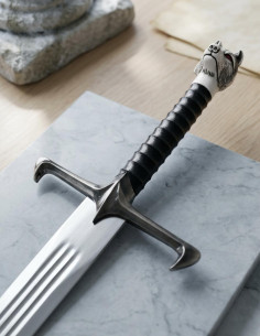 This is the time to let that passion show in every detail, in every glance you attract, in every event or gathering where you feel proud of your identity. The Longclaw Sword, with its impressive dimensions, made of high-quality stainless steel, is not just a replica but a symbol of commitment to that loyalty you long to demonstrate. The wolf-shaped pommel and the Stark house seal in wood connect you to the saga on a deeper level — a ritual, an affirmation, the presence of someone who goes beyond simple fandom.