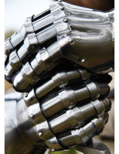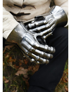 Get yourself a pair of 14th-century medieval gauntlets in hourglass style, an essential piece to complete your historical armor. These gauntlets, designed to offer optimal protection in combat, stand out for their high quality, flexibility, and affordable price, making them an ideal choice for both medieval reenactments and collectors.