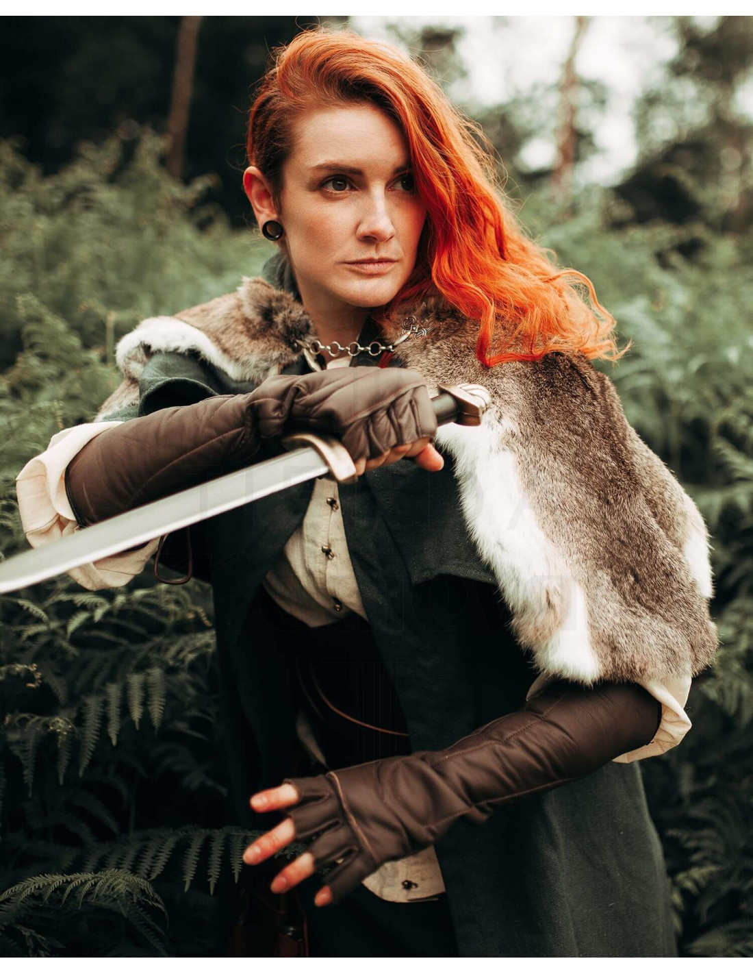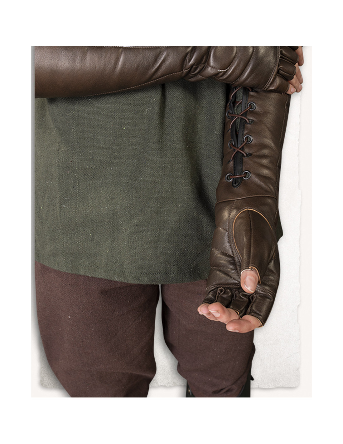 Are you looking for gloves that combine style and functionality, perfect to complete your adventurer or warrior look? These fingerless medieval leather gloves, model Gillian, are the ideal choice to add an authentic touch to your live role-playing games, cosplay, or steampunk theme.