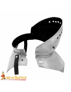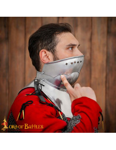 Do not miss the opportunity to get this one-of-a-kind gothic gorget. Add style, protection and personality to your medieval costumes and dazzle everyone on your next adventures. Get the Gothic Gorjal with folding mask and become a true protagonist!