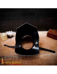Do you want to stand out with your armor in your LARP and reenactment events? So look no further, because we have the perfect accessory for you. Introducing the Blackened Finish Gothic Collapsible Facemask Gorget, handcrafted from 18 gauge mild steel. Not only will you look amazing in this gorget, but you'll also be protected and safe on your adventures.