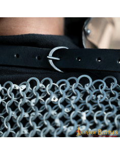The gorget is meticulously handcrafted from strong 16 gauge mild steel, ensuring its durability and strength on the battlefield. In addition, its close fit is possible thanks to a resistant leather strap and a steel buckle on its back, which ensures a comfortable and secure fit.