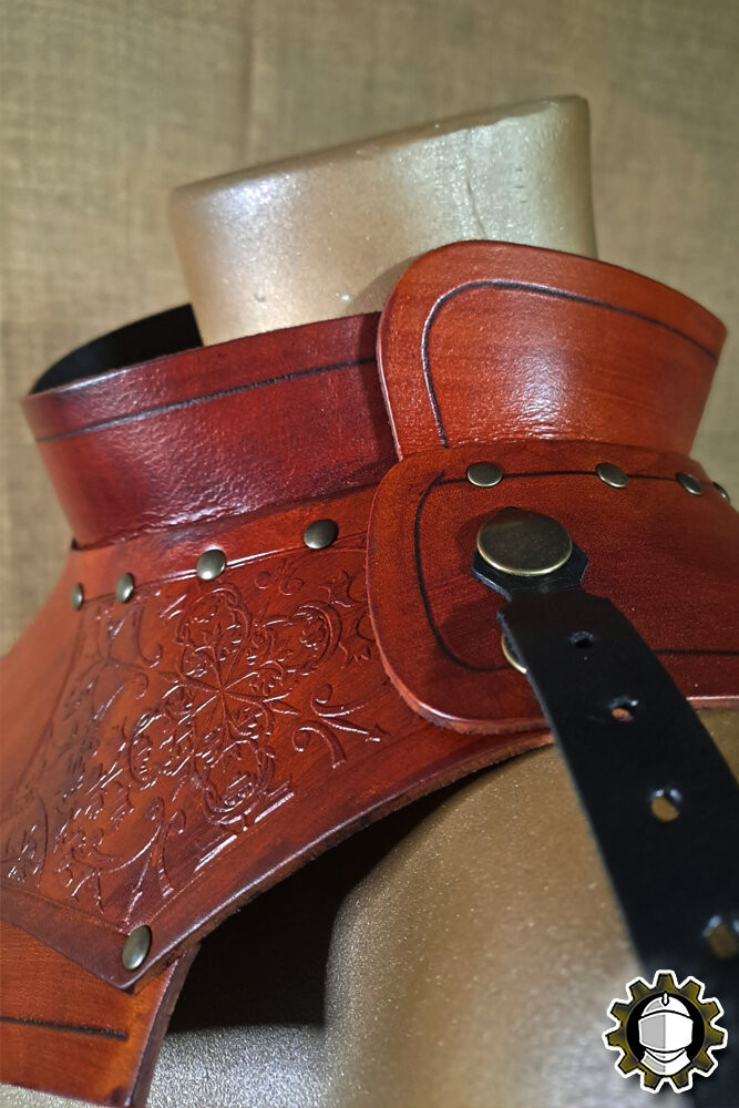 The deep brown of its finish stands out with every movement, creating a visual effect that will attract admiring glances. Every detail has been meticulously cared for, ensuring that this gorget fits comfortably and protects you, whether at a historical reenactment event or a cosplay convention.
