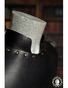 Imagine being able to bring a touch of history and sophistication to every step you take. The elegance of the medieval gorget in molded leather in the classic black color is the perfect complement to your wardrobe, ideal for any event where you wish to stand out.