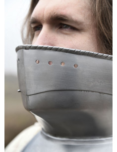 Have you ever dreamed of looking like a true medieval knight? Now you can make it a reality with our **medieval bevor in steel** — a piece that combines history, style, and functionality in a single accessory.