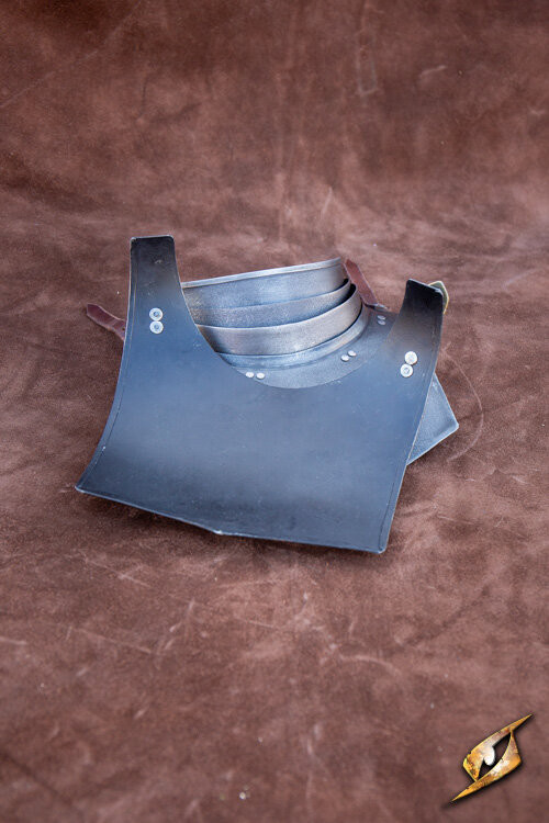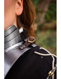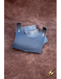 The true strength of this gorget lies in its balance. A steel panel at the back complements the front, ensuring that the weight is evenly distributed, meaning you won't have to worry about constant adjustments while moving confidently. Additionally, the leather straps and steel buckles ensure a secure and comfortable fit, allowing you to look stunning effortlessly.