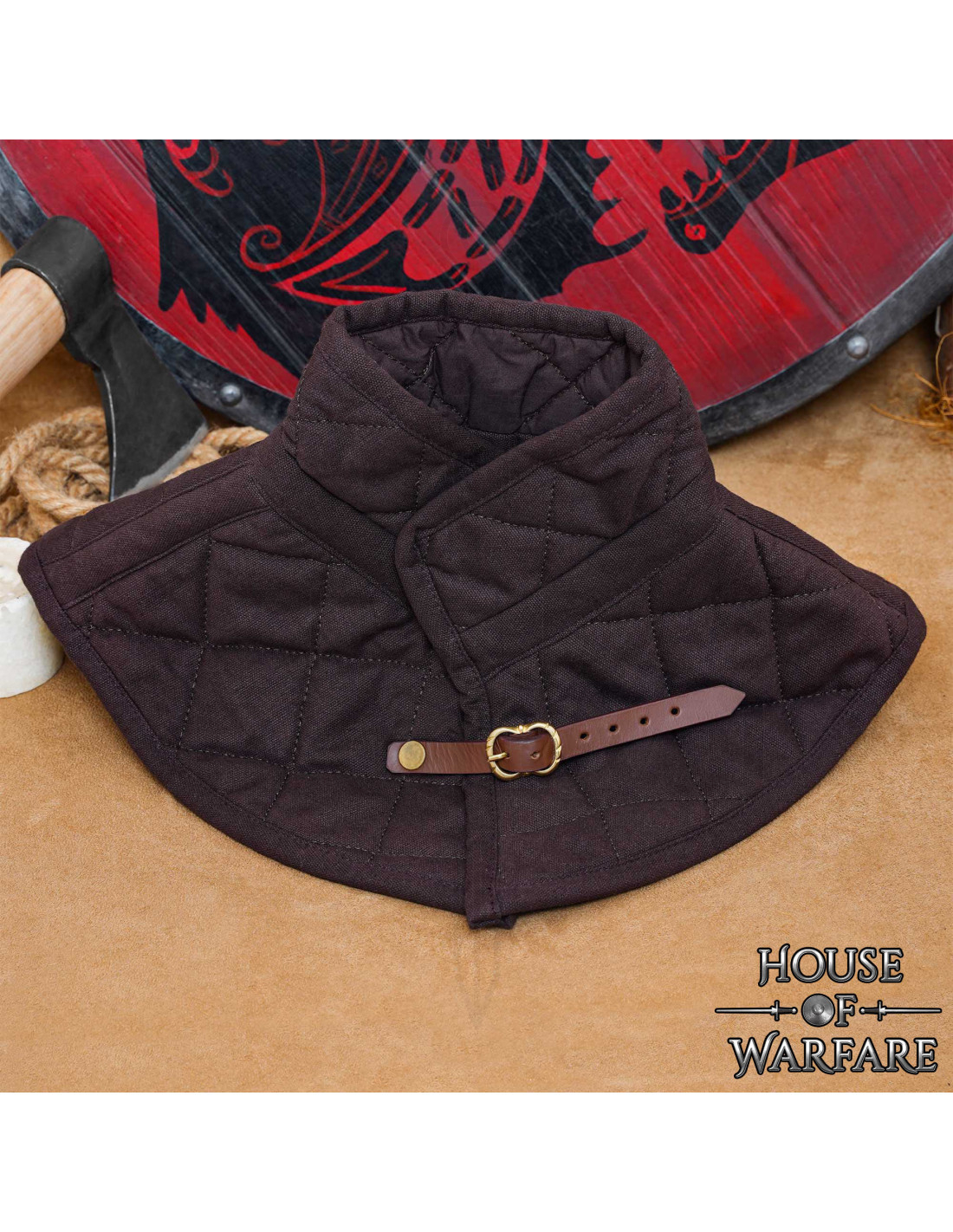 Easy to maintain, it is hand-washable or can be washed on a gentle cycle and air-dried, ensuring it retains its shape and appearance with use. Frequent searches: buy padded medieval gorget with strap, brown.