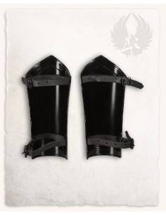Mina greaves in polished steel are a solid choice to complete your medieval armor or period costume. Their elegant and functional design makes them suitable for both historical reenactment and LARP or other activities related to the medieval era. They offer reliable leg protection while maintaining a sleek and attractive look.