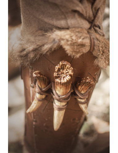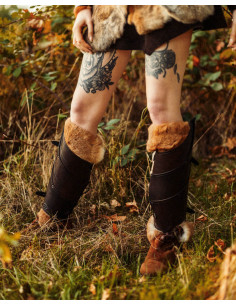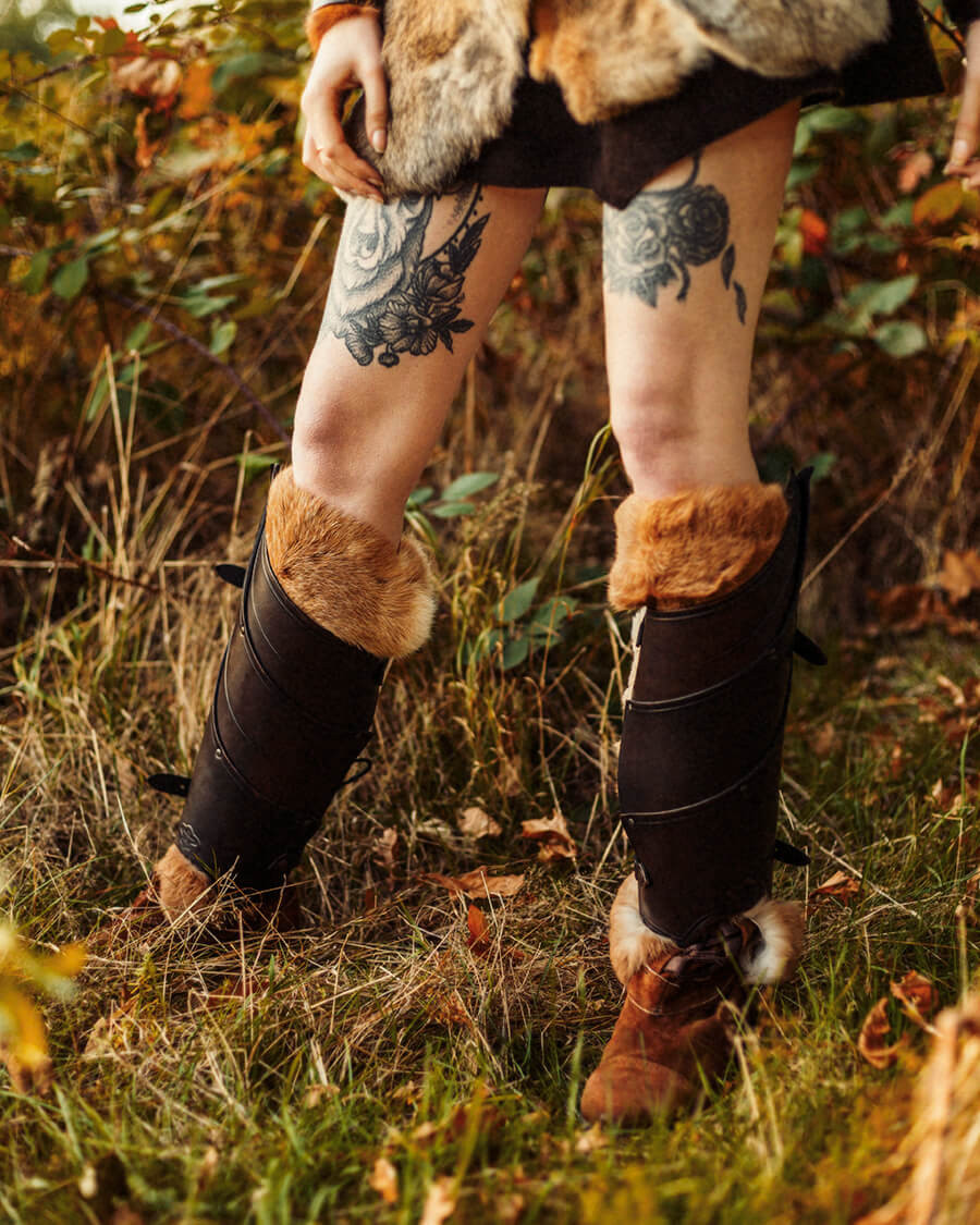 Are you looking for a bold and elegant touch to complete your period outfit? These medieval leather greaves model Lilith are the perfect choice for those who want to stand out in every battle, whether at a cosplay event or in a historical reenactment.