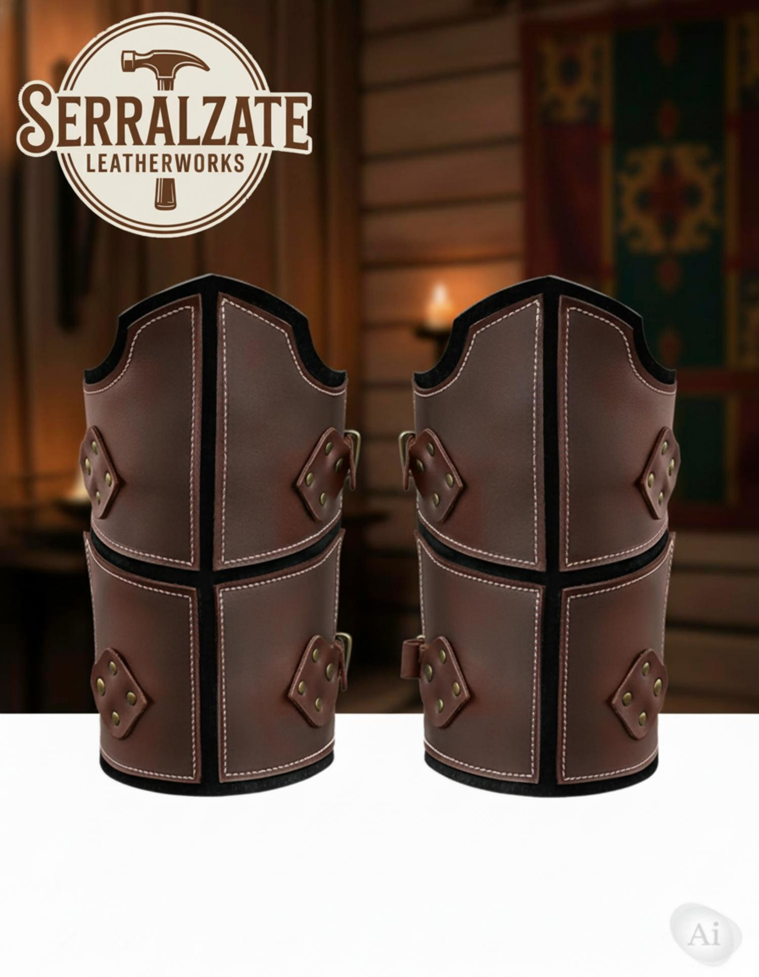 Medieval greaves in brown leather model León