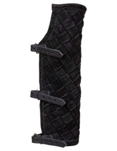 These shin guards combine the warmth of braided suede with padding designed to cushion impacts without sacrificing speed. The stitched square pattern creates a resilient surface that also adds controlled volume and a robust appearance on the leg. Their conical shape adapts to the lower leg anatomy, facilitating each step and preventing uncomfortable chafing beneath the layer or armor.
