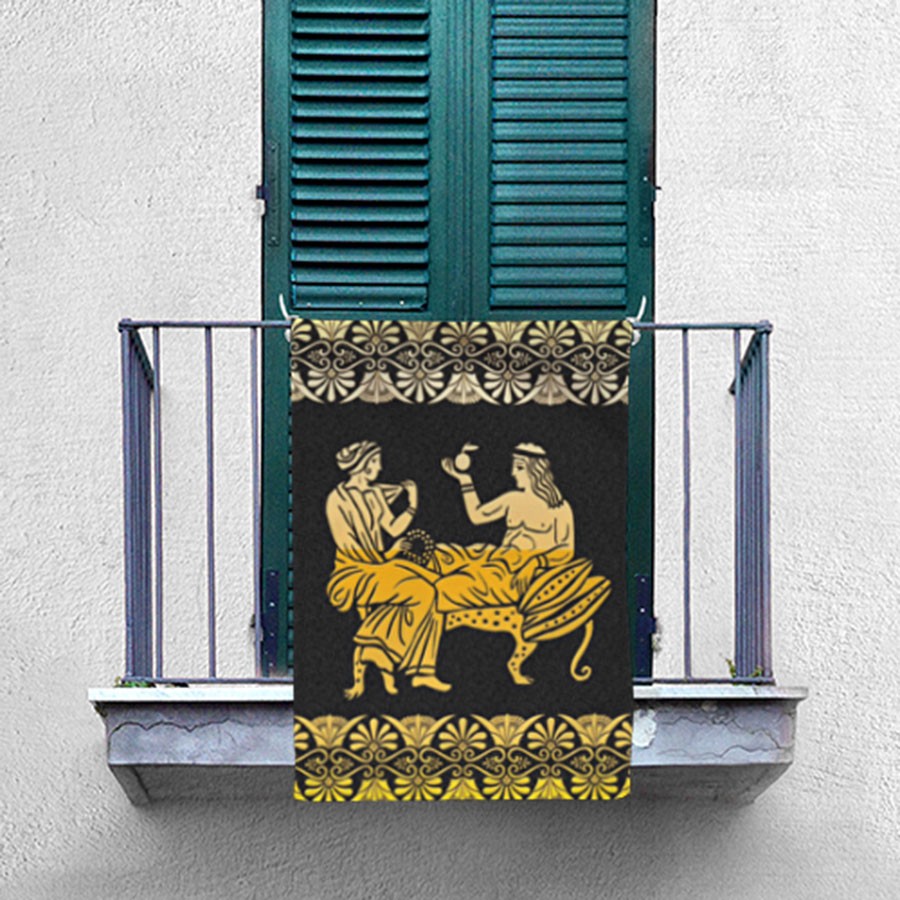 This banner, measuring 70x100 cm with carefully designed ribbons to tie, not only decorates but also creates an environment that invites you to imagine moments of tranquility and enjoyment, like those of the ancient Greeks. The vibrancy of its bright colors and meticulous attention to detail capture attention, making your guests feel transported to a world where rest was an art and leisure, a virtue. It is much more than a decorative piece — it’s a statement of appreciation for your culture and lifestyle.