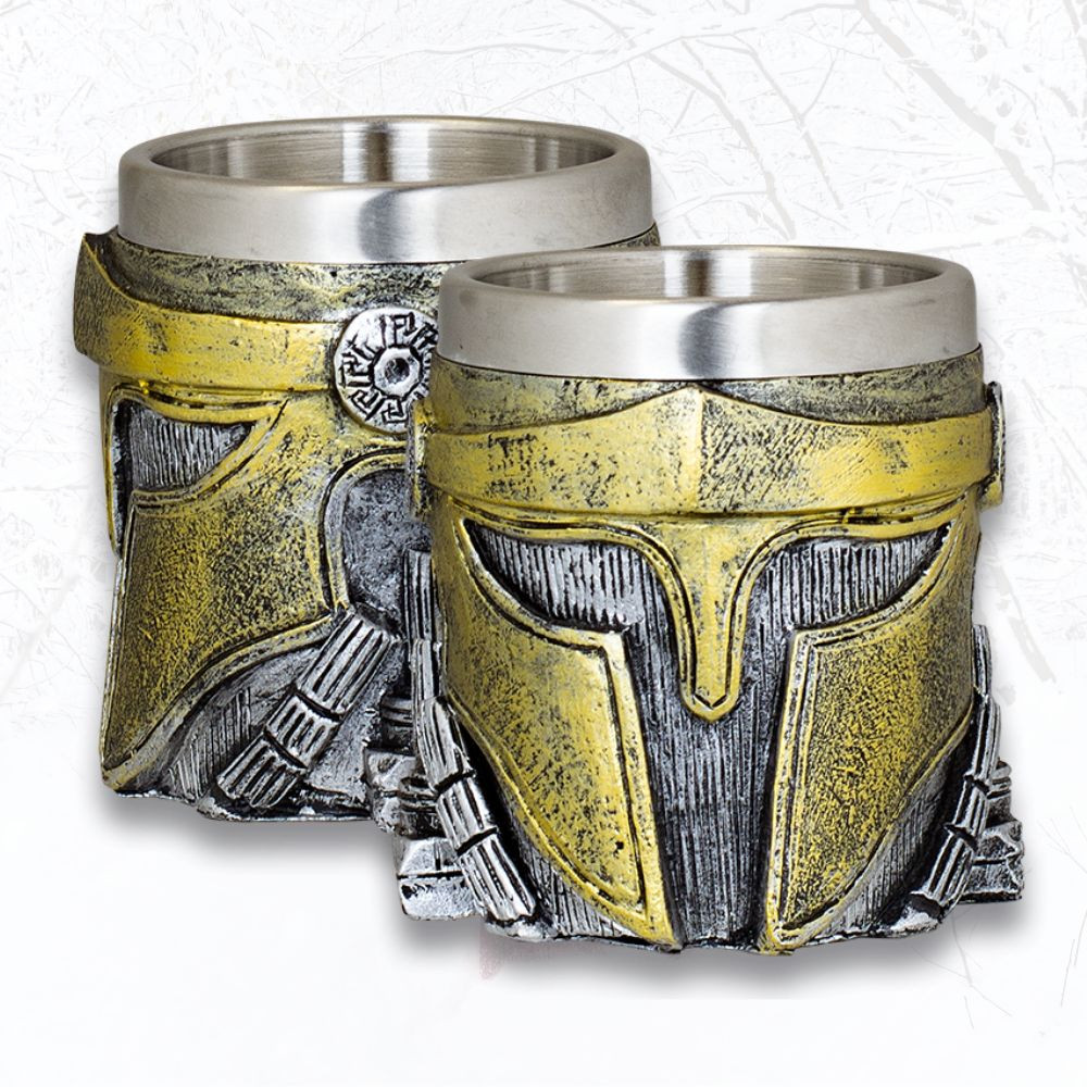 Discover a unique piece that combines functionality and aesthetics with a design inspired by history. This shot glass, meticulously decorated in the shape of a Spartan helmet, is not just a drinking utensil, but also a handcrafted work presented in great detail. Made of resin, its textured finish mimics the appearance of a metal helmet, with golden and silver tones that enhance its visual character. Every inch of the design has been carefully crafted to offer a 360º decoration that makes it a standout item in any collection or themed event.