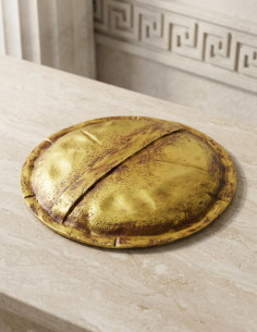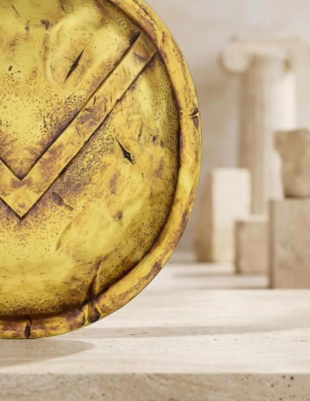 The Leonidas 300 ornamental shield, made of fiberglass and with a diameter of 605mm, is the answer for those who wish to project an image of power and determination. Weighing at 2910g, it is balanced for key maneuvers, while the irregular texture and the aging effect in brown tones enhance that sense of history and resilience. Its 'V' shaped design in the center reinforces the feeling of enhanced protection, making your presence convey authority and courage with every movement. This shield is not just an accessory; it is a symbol that allows you to project that unbreakable energy you need to make a difference in every confrontation.
